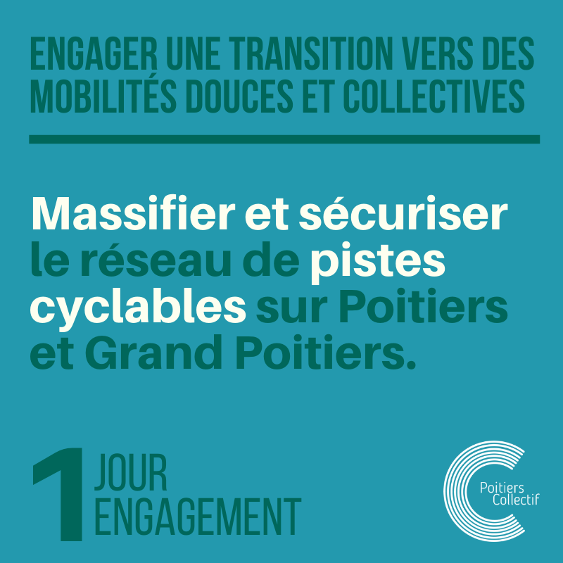 Retrouvez en cliquant à ce lien toutes nos propositions pour les mobilités sur Poitiers et Grand Poitiers ! N’hésitez pas à télécharger le chapitre complet de notre programme consacré à cette priorité.