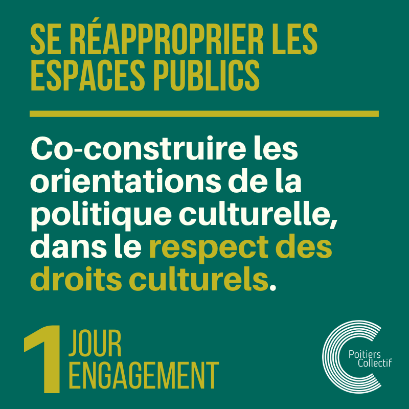 Nous permettrons à l’espace public de s’ouvrir davantage à la culture, et nous développerons à nouveau les lieux dont la vie associative et citoyenne poitevine a besoin.