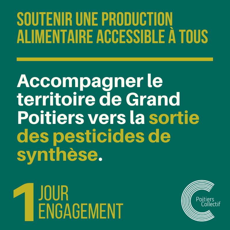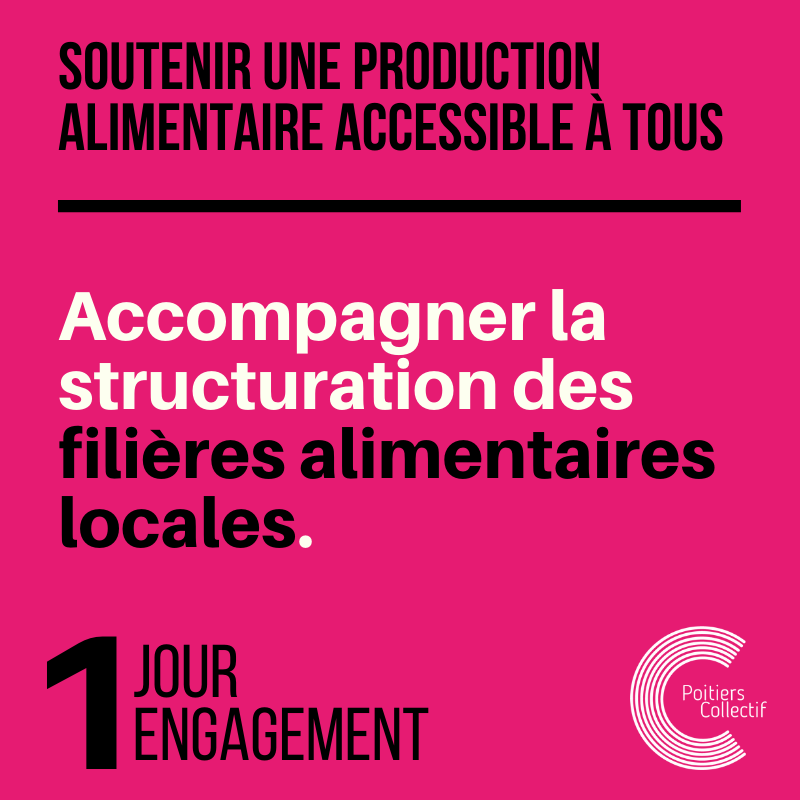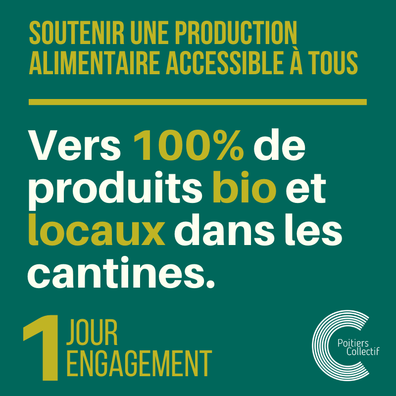 Fort du bilan des élus sortants en matière de restauration collective et de protection de la ressource en eau notamment, et fort d’une expertise avérée sur ces enjeux écologiques et économiques majeurs, Poitiers Collectif se saisira de l’enjeu de la production alimentaire locale pour :